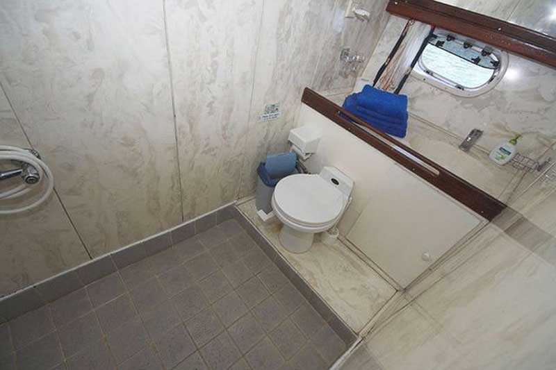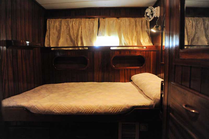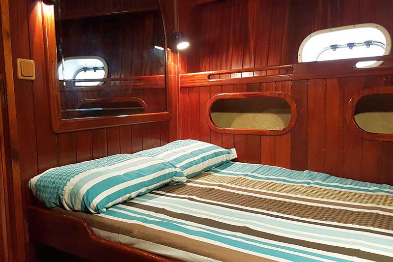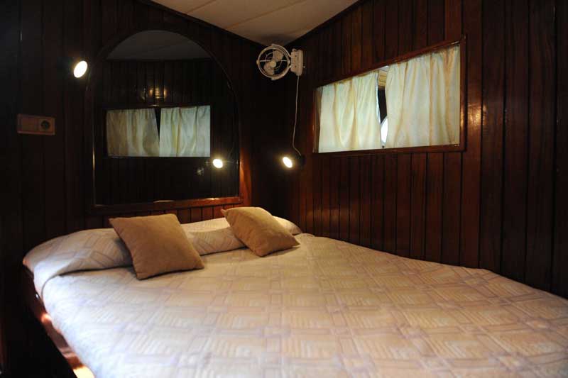 6 cabines avec lits doubles chacune avec climatisation et wc-douche.