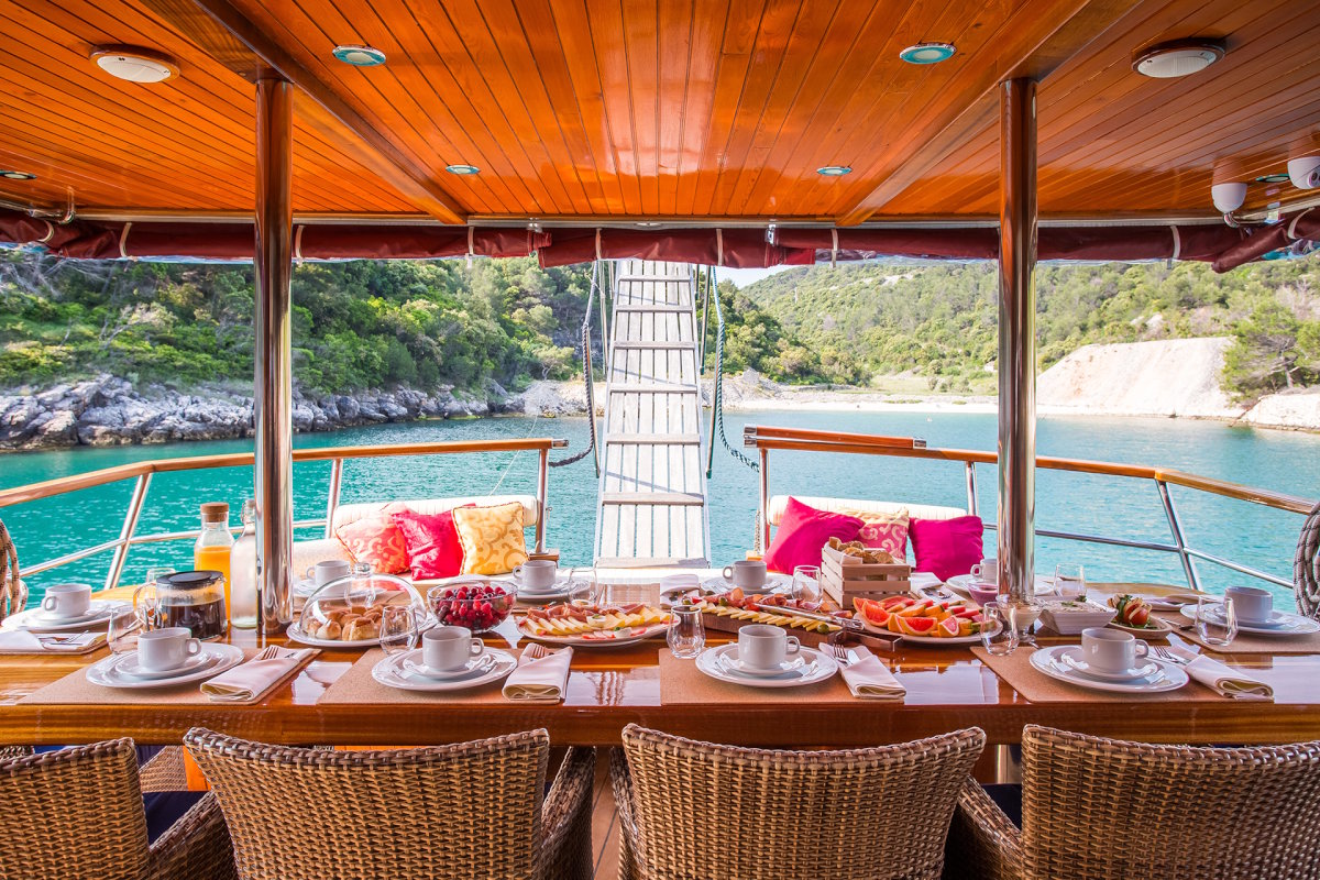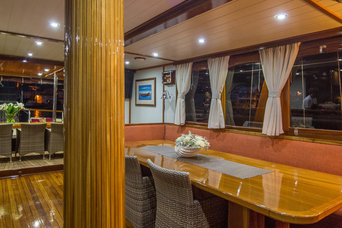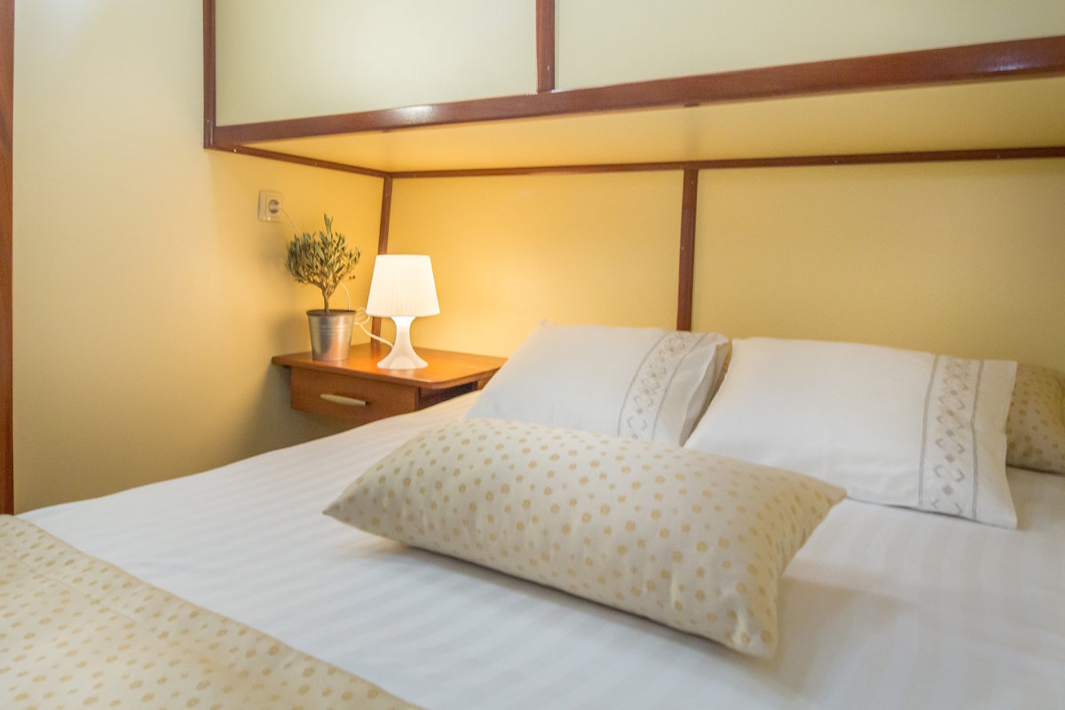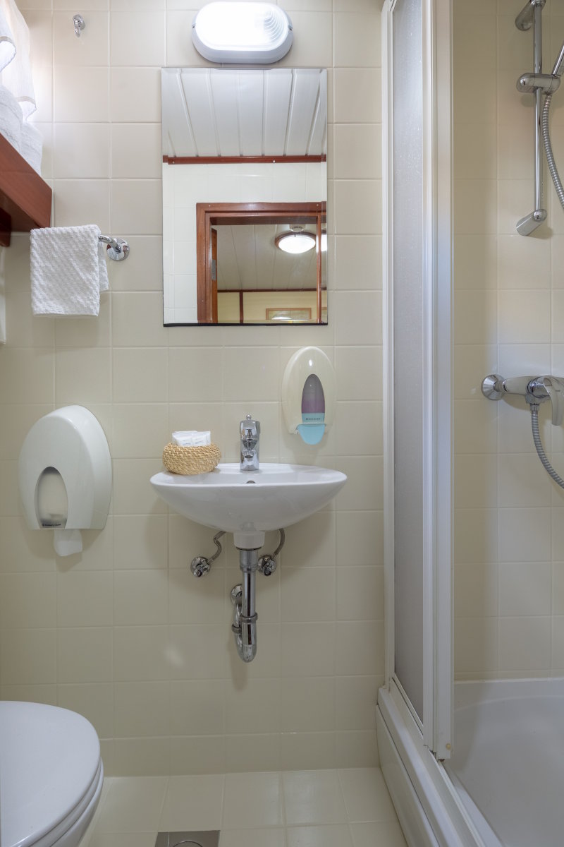 6 cabines ( 4 cabines avec lits doubles, et 2 cabines avec deux lits simples separes ), chacune avec climatisation et wc-douche.