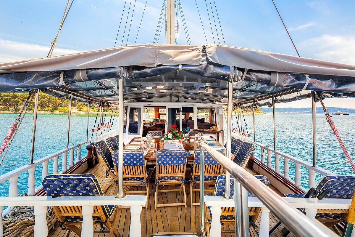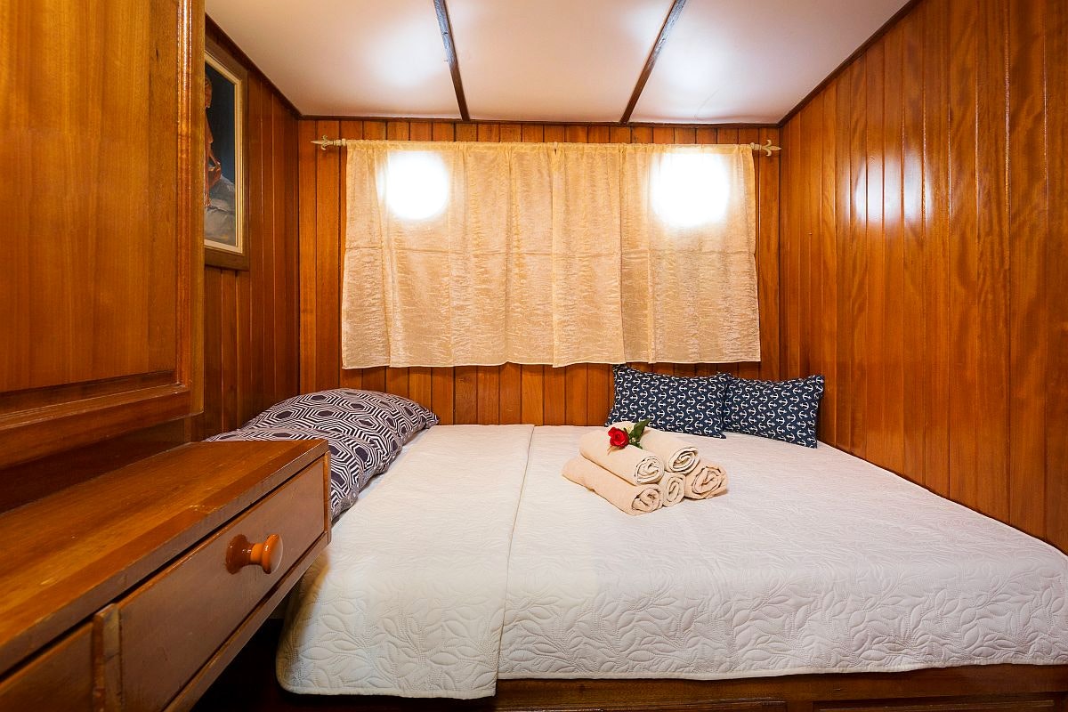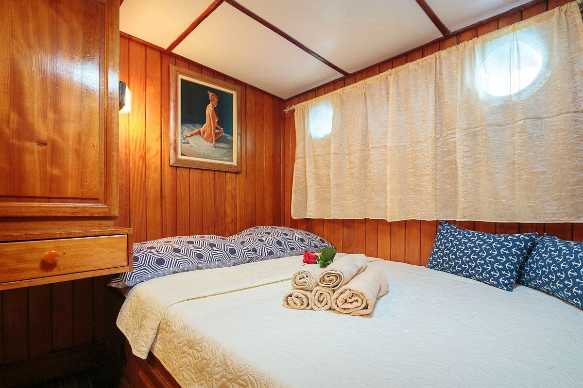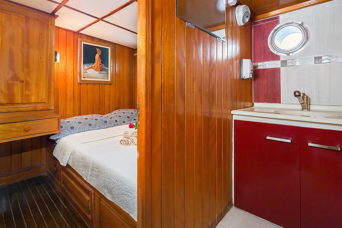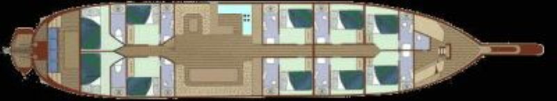 8 cabines (6 cabines avec lits doubles et 2 cabines avec lits jumeaux) chacune avec climatisation et wc-douche.