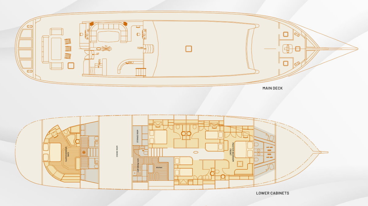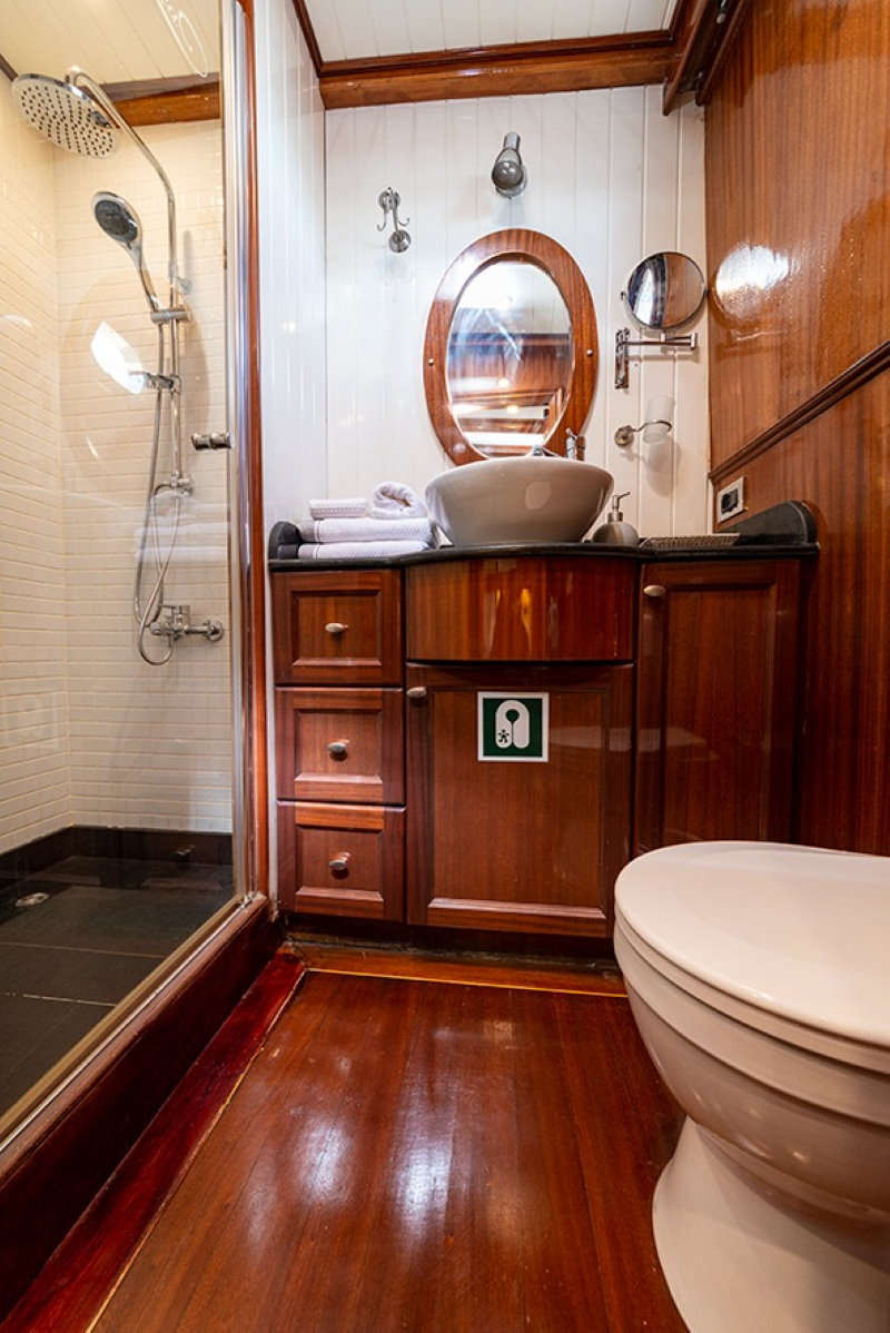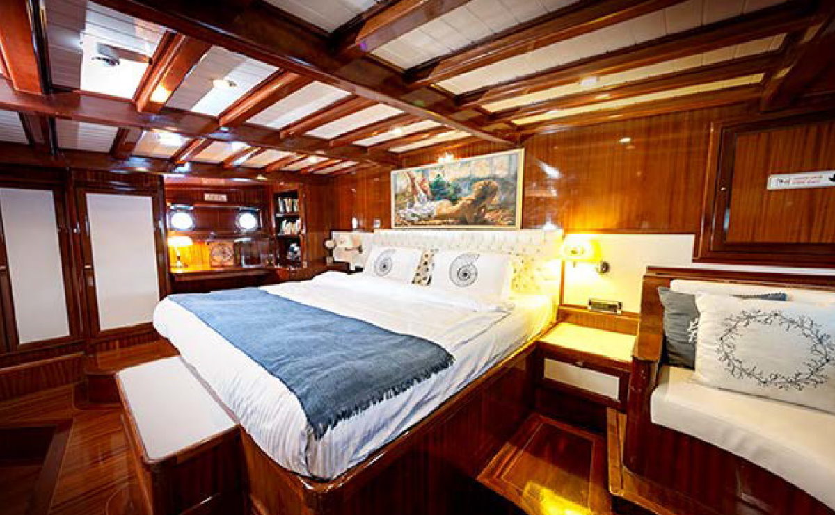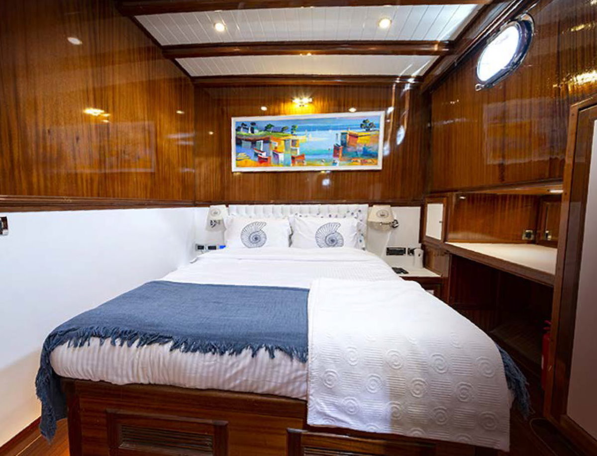 5 cabines ( 2 cabines master avec lits doubles, 1 cabine avec lit double et 2 cabines avec lits jumeaux transformables en lits de doubles ) chacune avec climatisation et wc-douche.